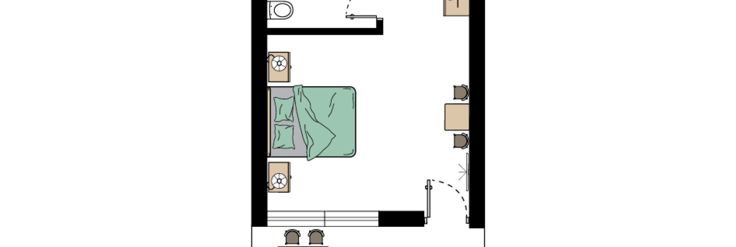 Double room with shower/WC & hairdryer (without bidet), small sitting area, safe, SAT-TV, balcony south side approx. 15 m² with breathtaking view (with table & chairs).