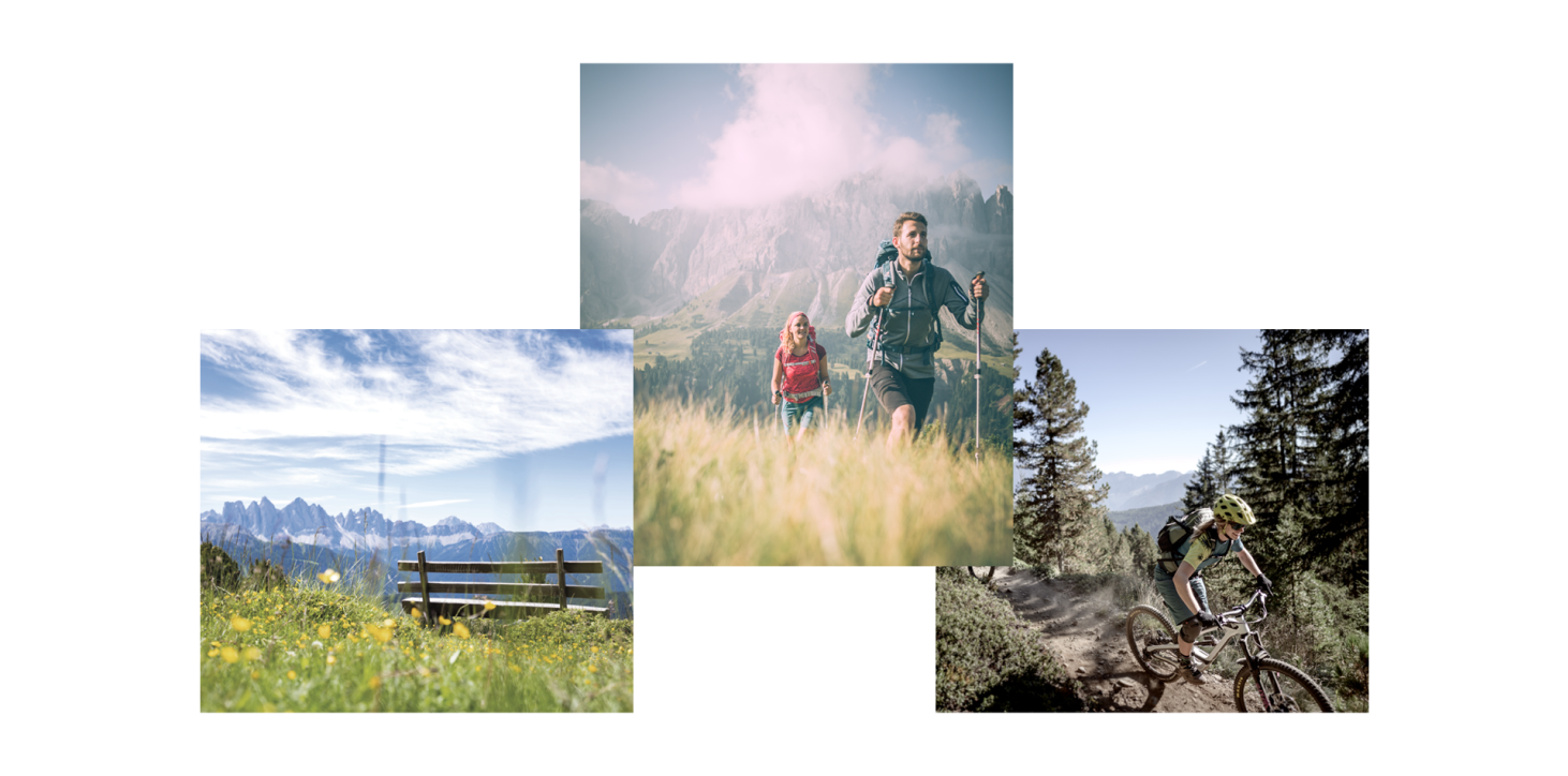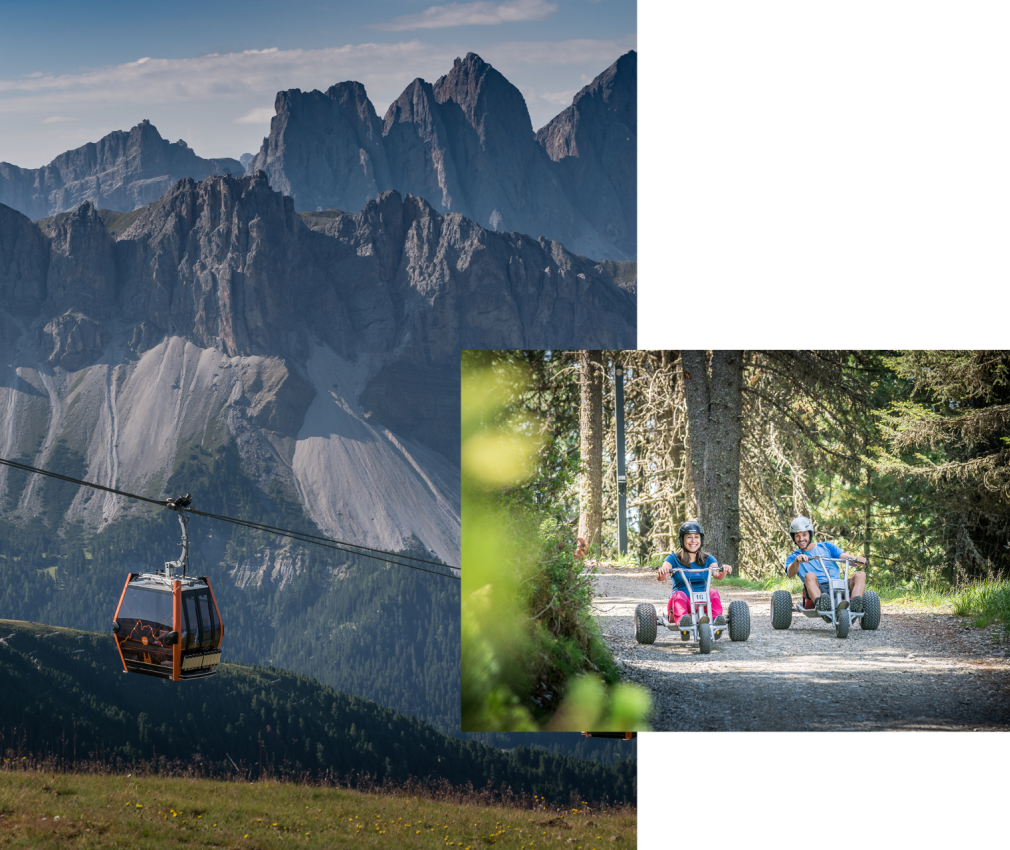 ... durante un'escursione intorno al Sasso Putia, all'alba sul Gabler, dove la vista divaga su un mare di montagne, o mentre si va in mountain bike nel Parco Naturale Puez-Odle. Il nostro mountain residence alpenhof in Alto Adige è il punto di partenza per una vacanza attiva sulla Plose vicino a Bressanone come anche per una vacanza in moto nelle Dolomiti, patrimonio naturale mondiale dell'Unesco: La novitá sulla Plose é il PLOSEBOB, un divertimento tutto l’anno in bob chiusi su una pista guidata da binari.
